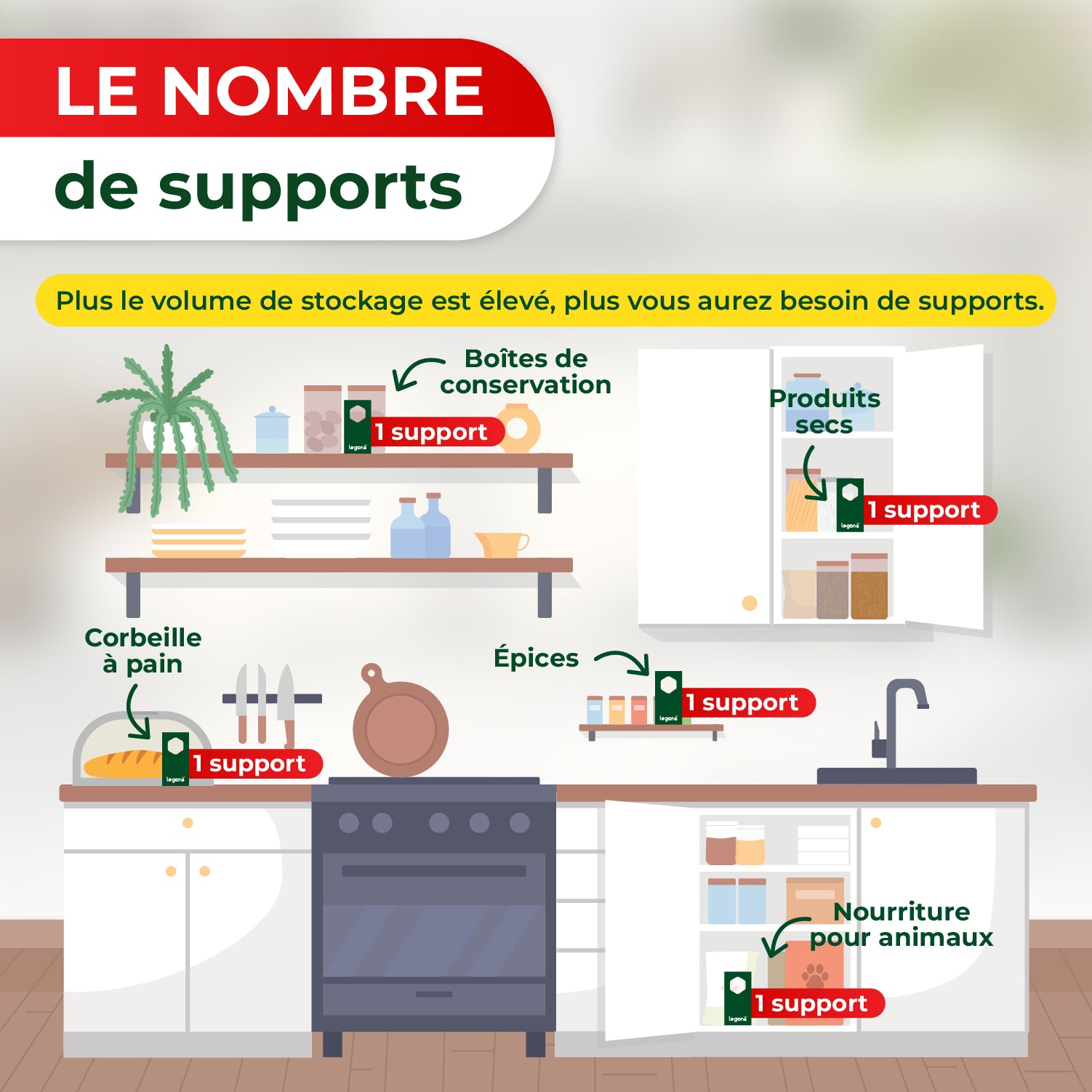 Les supports peuvent être positionnées debout ou couchées, mais doivent toujours former une surface de contact avec la zone de circulation des mites.